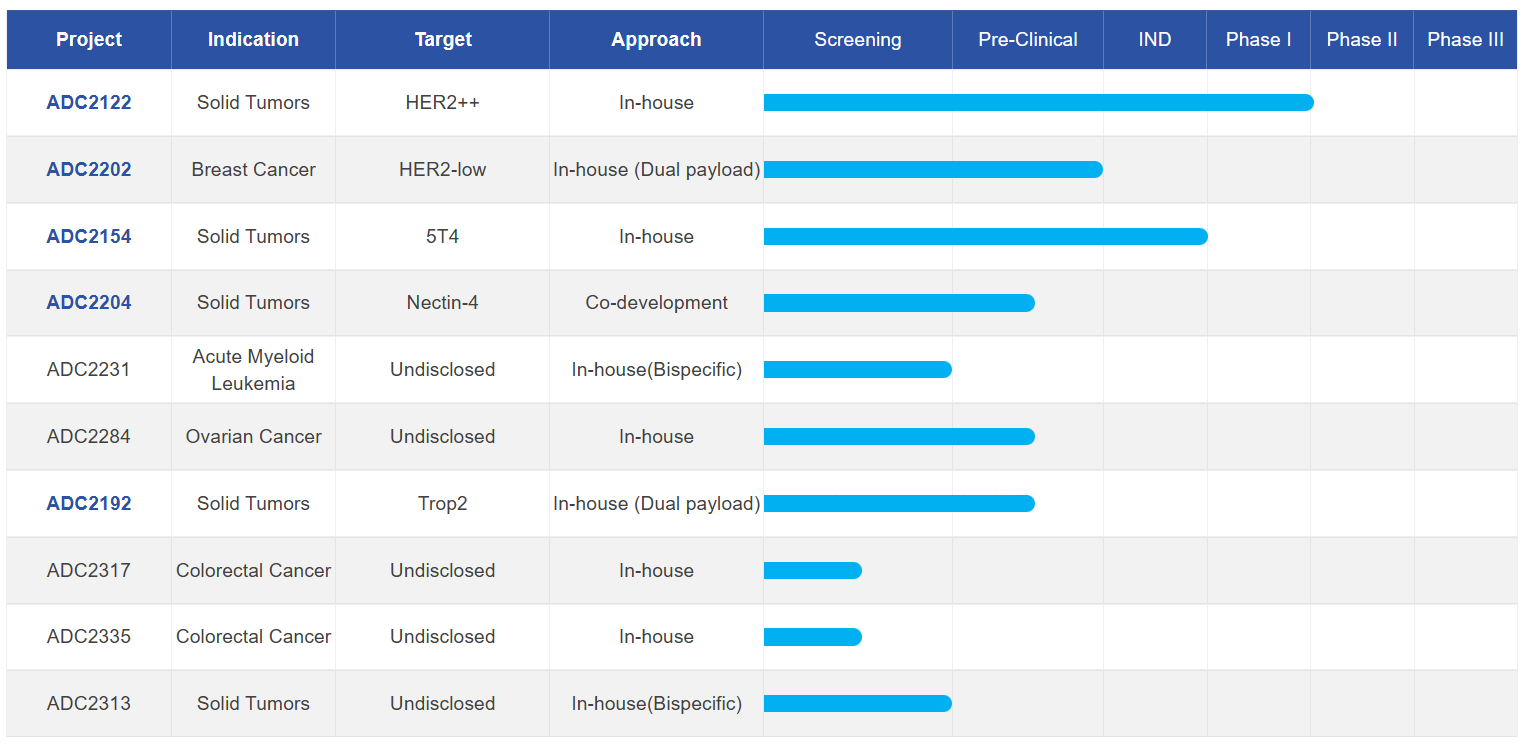 Since its incorporation two years ago, Adcoris has established a very rich product pipeline, including multiple global innovative ADC pipelines such as dual payload ADC, bispecific ADC, new targets and indications ADC, etc. It reflects Adcoris' strong technical strength.